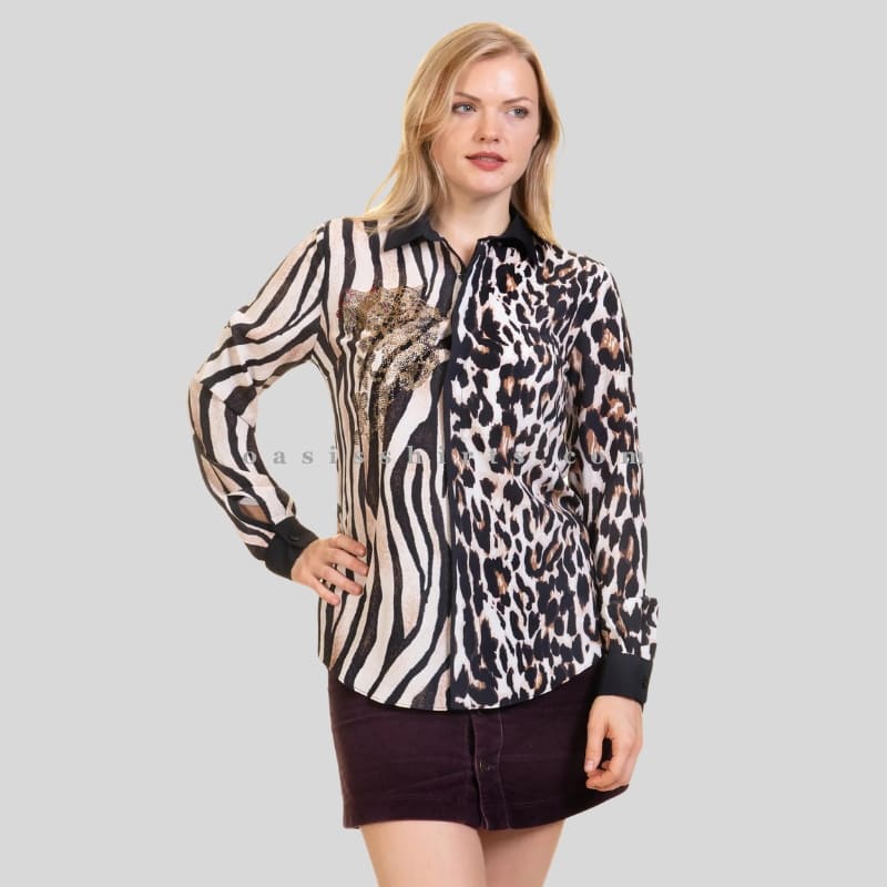 Home / Unbranded Shirts Manufacturer / Women Chiffon Wear / Animal Printed Chiffon Dress Shirt