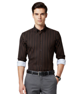 Black Stripe Shirts, spread collar, long sleeves with buttoned cuffs, full buttoned placket at the front, yoke on the back, curved hem