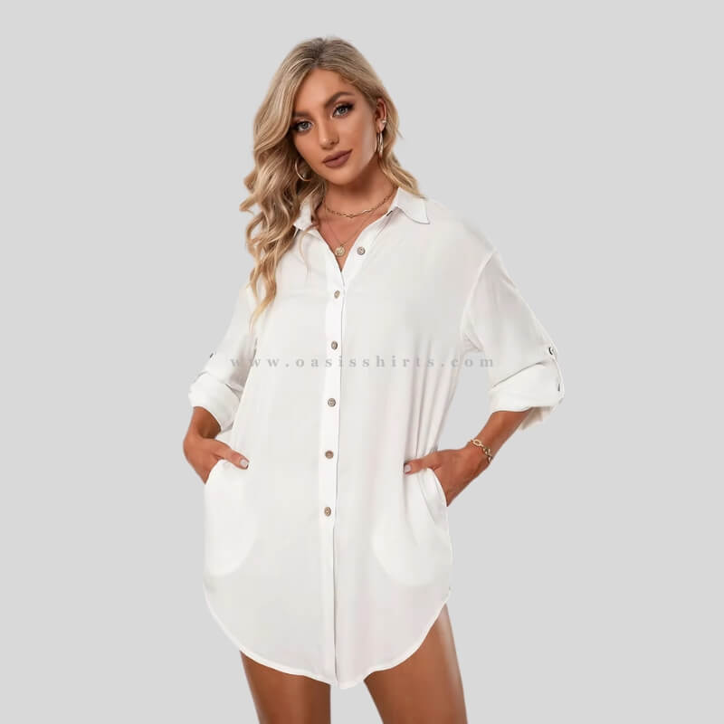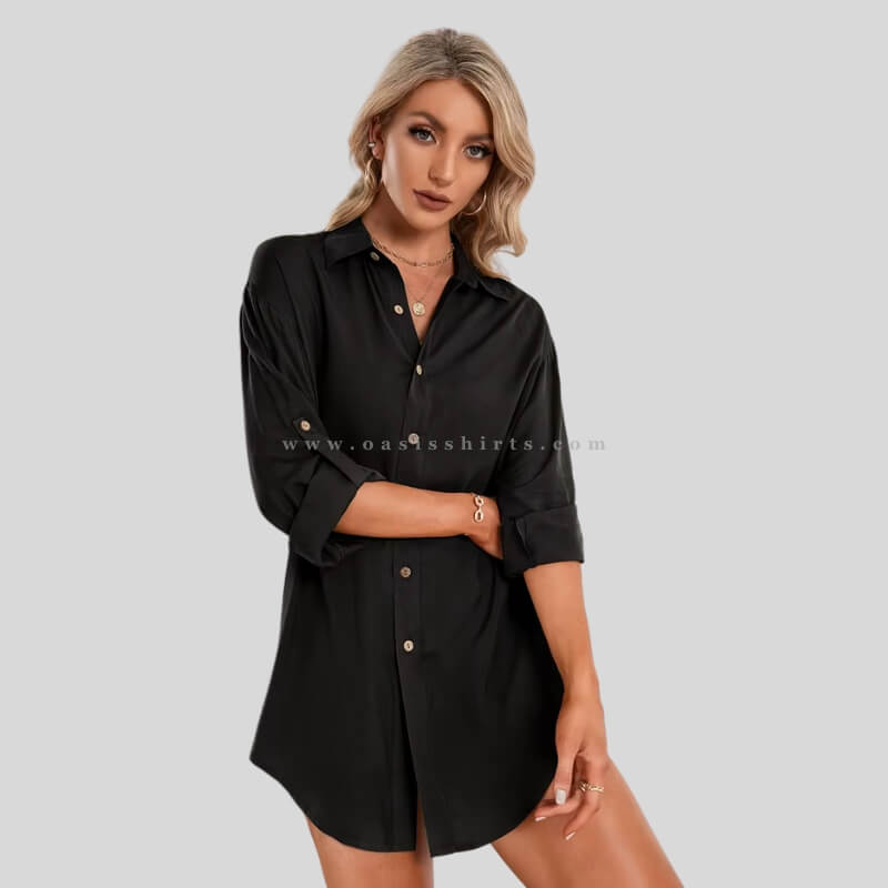 This shirt features a v-neck with roll up sleeves pattern. Ot has a straight hem line and the green colour promises a dtress free day.