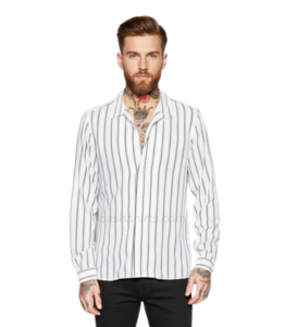 Enquiry for Private LabelDesirable and truly summery, the soft white shirt with cut thin grey stripes running vertically is a class apart! Bring in the cool dude and carefree look right into your office wear collection! Designed to lead, the shirt with full sleeves, button down panel and straight fit is cool, easy go with the flow and super designer range. Bulk purchase offer at Oasis Shirts.